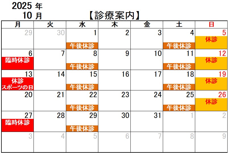 診療時間を変更(午前診療:9:00~12:30→8:30~12:00、午後診療14:00~→15:00~、午後休診:木・土→水・土曜日)しました。